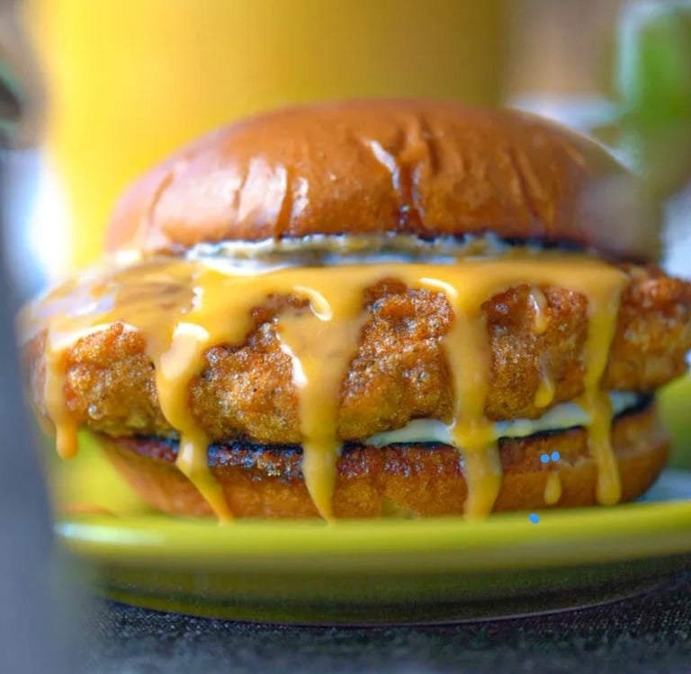 6. **Assemble the sandwiches:** Split and lightly toast your buns. Place a fried lion's mane fillet on each bottom bun, top with cheese, tartar sauce, and the top bun.