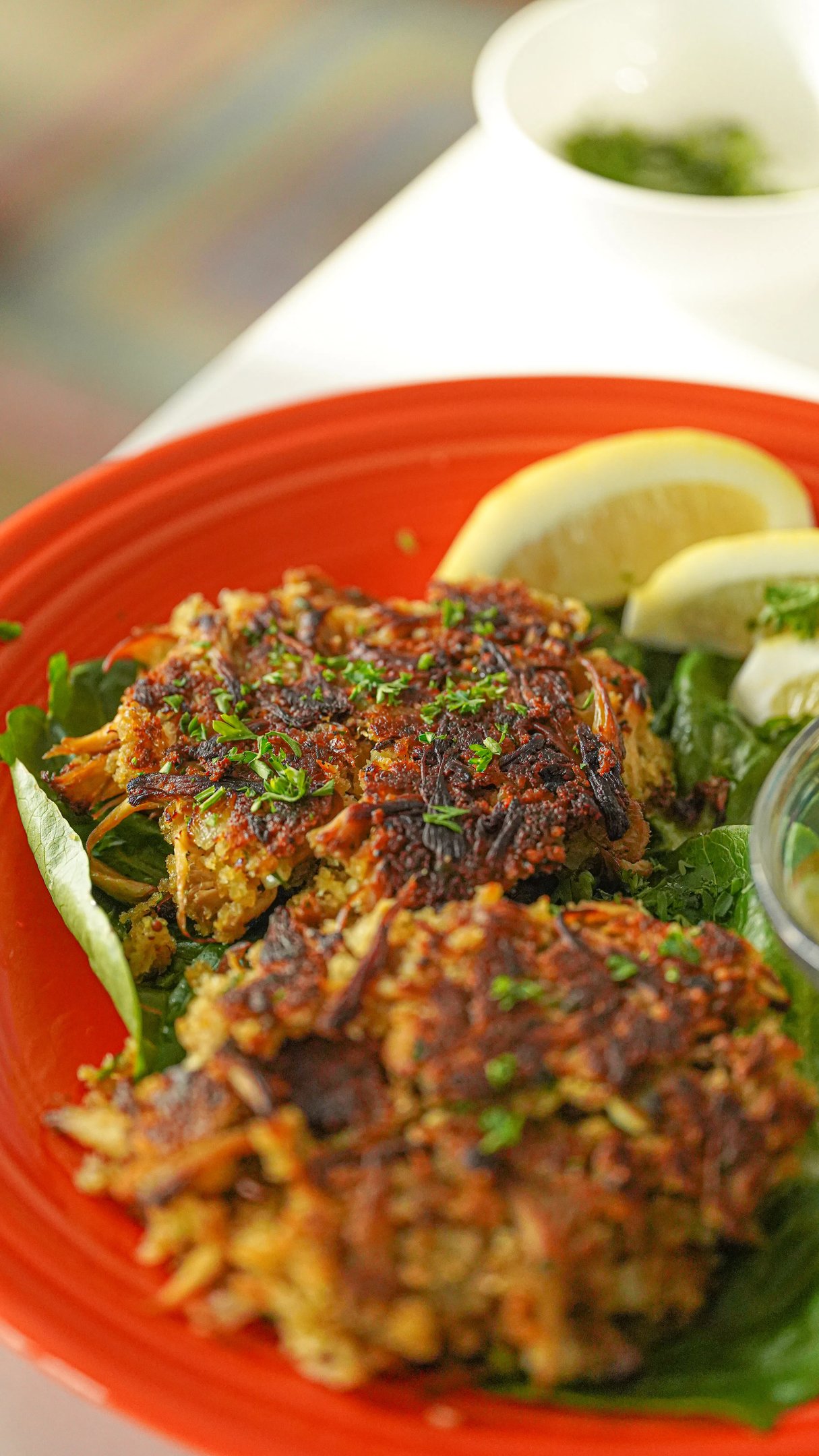 Serve: Garnish with parsley and lemon wedges. Serve with Cajun-style aioli.